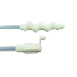 Kateter berbentuk spiral putih dengan lubang keluaran belakang dan depan untuk babi